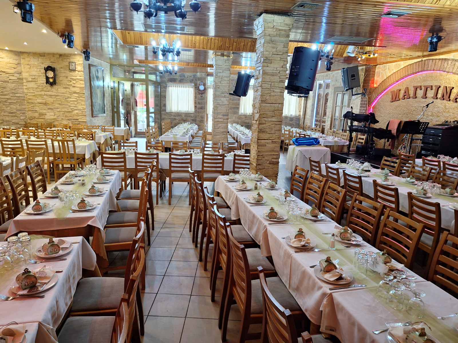 Η Μαγγίνα αποτελεί εξαιρετική επιλογή για συνεστιάσεις συλλόγων, εταιρειών, τάξεων ή φίλων, προσφέροντας άνετο χώρο για έως 200 άτομα.